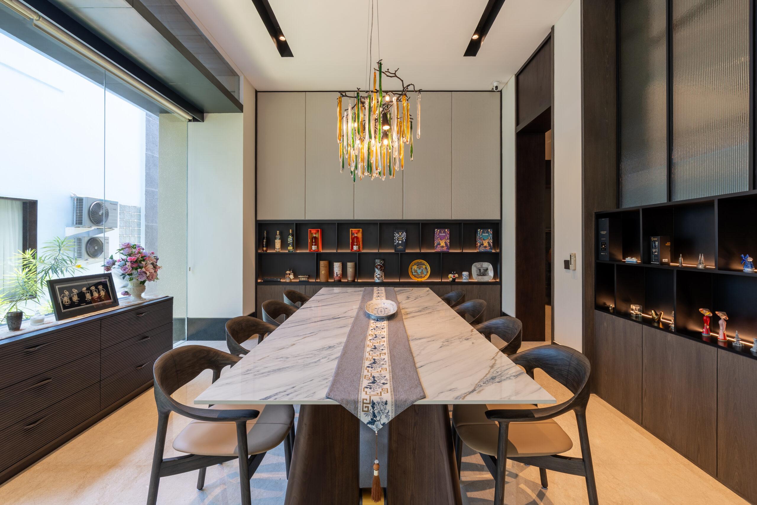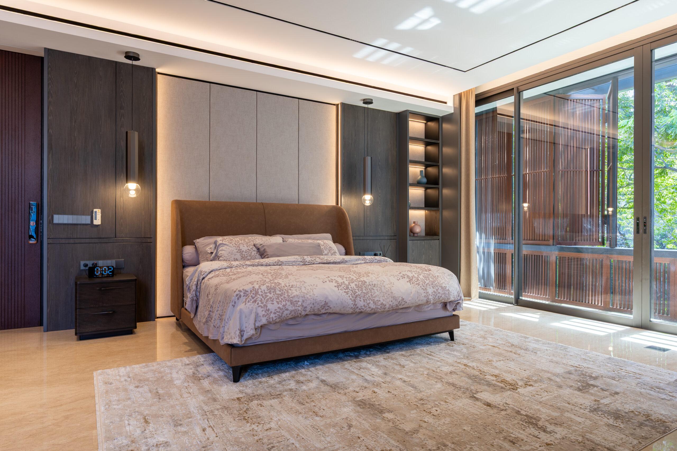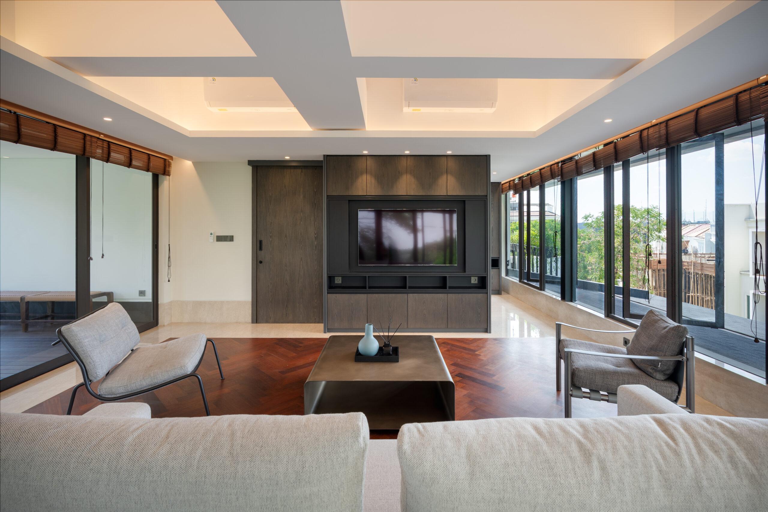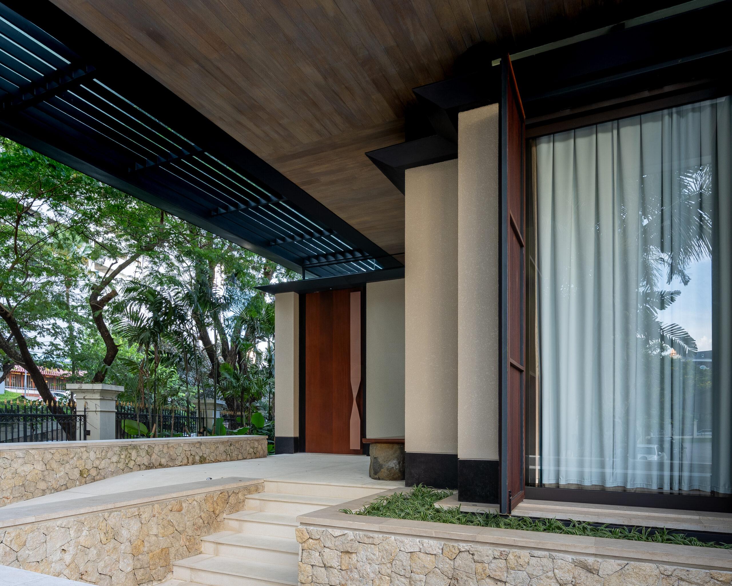Material selection is equally intentional. The use of natural materials such as wood contributes to a warm and organic atmosphere, while also supporting thermal performance. These materials help absorb and release heat gradually, creating a more stable indoor environment throughout the day. The combination of glass and wood establishes a harmonious relationship between modern design and tropical sensibility.